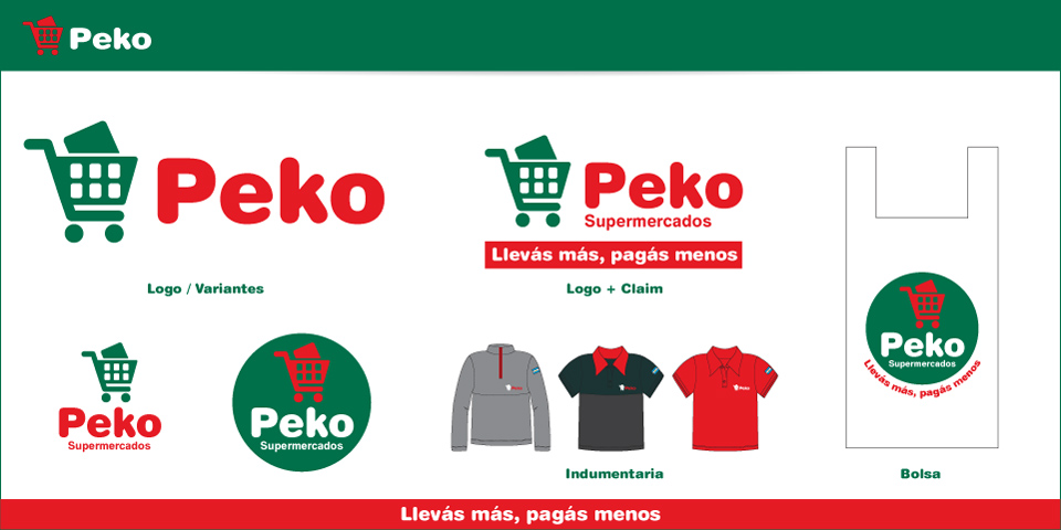 Peko: Supermercados. Diseño de logo y sistema de identidad.